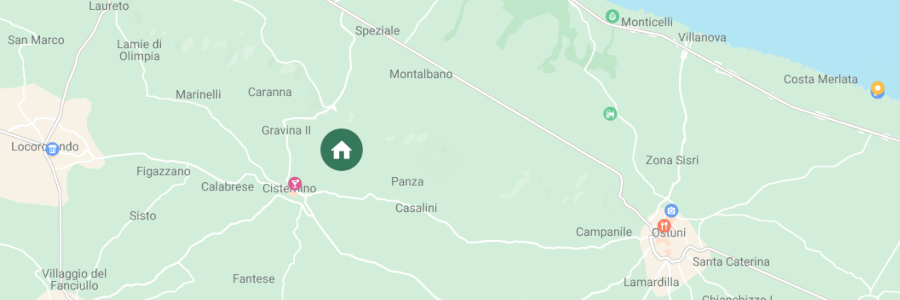 La tenuta è situata a pochi chilometri dal centro di Cisternino e dagli altri punti d’interesse della zona.